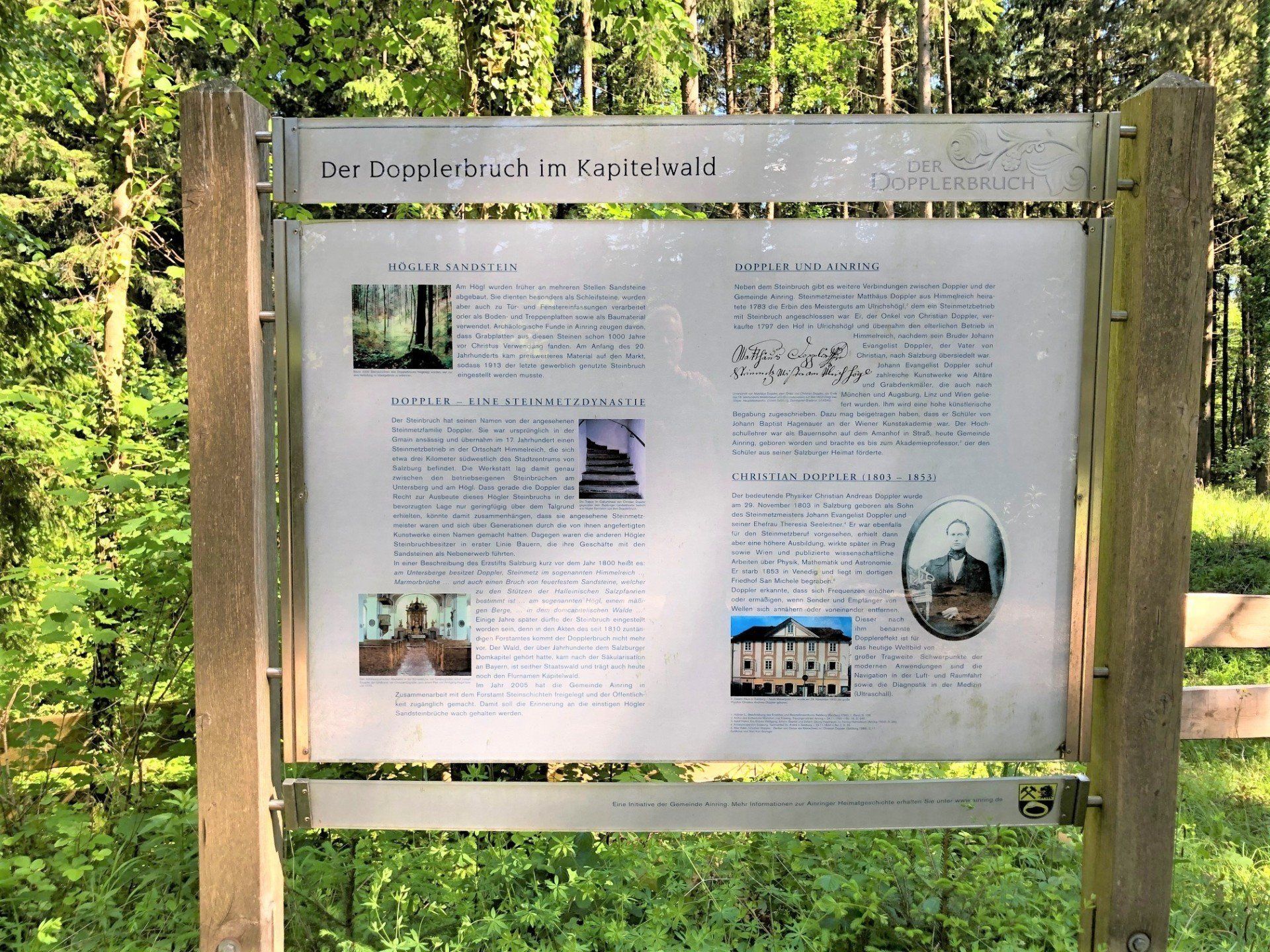 Mehr als nur ein Abstecher ist der von den Bayerischen Staatsforsten, der Gemeinde und von Schülern des Karlsgymnasiums in Bad Reichenhall mitgestaltete Lehrpfad zum Thema Revitalisierung eines Altbestandes zu einem gesunden Mischwald. Der Weg zweigt nahe des Weilers Wiesbach vom Franziskusweg ab. Mehrere Infotafeln erläutern die vielfältigen Maßnahmen zur Verbesserung der Widerstandskraft gegen Sommertrockenheit, Sturmbruch, Schädlinge und Wildverbiss. Im Zuge der Transformation der aktuellen Bestände in einen Wald der Zukunft werden interessierten Bürgern und Besuchern auch Patenschaften für neu angepflanzte Bäume angeboten. Ebenfalls am Wegesrand liegt der Dopplerbruch. In diesem Steinbruch hat die Familie Doppler aus Salzburg den in vielen Prachtbauten der Stadt verbauten Sandstein gebrochen. Ihr Sohn Christian Doppler war für die harte Arbeit zu schwach. Er wurde dafür einer der weltweit bedeutendsten Physiker. Der von ihm entdeckte Doppler Effekt beschreibt u.a. die Änderung der Wellenlänge des Schalls bei der Bewegung einer Schallquelle. Dopplers Grundlagenforschung erlaubte es später u.a. das Radar zu entwickeln und das Ultraschallgerät oder den Laser-Doppler.